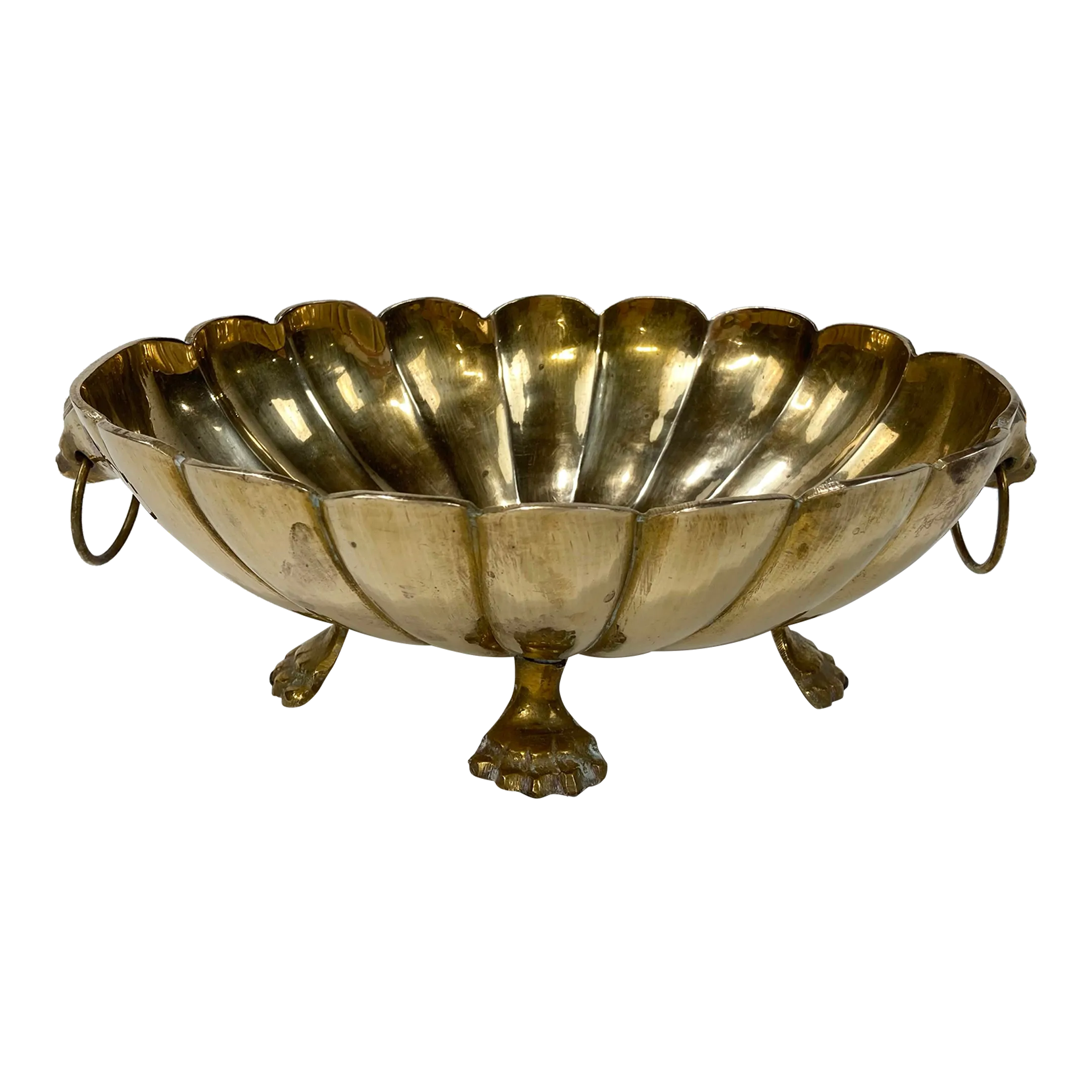 Scalloped Brass Footed Compote Bowl With Lion Head Handles Chairish